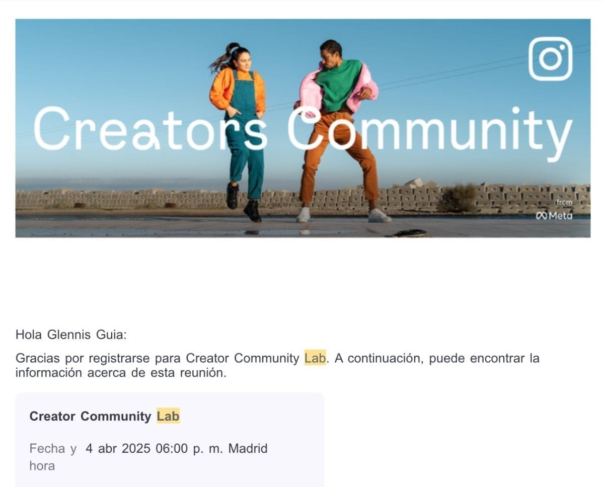 ➡️ Y actualmente, estoy participando en el Laboratorio de Creadores de Contenido, un programa especial organizado por META para seguir potenciando nuestras cuentas y contenidos con feedback directo de ellos.