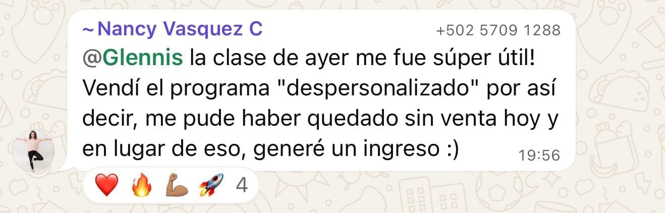 Tendrás acceso a mi Whatsapp privado para apoyo diario y tendremos llamadas grupales cada 15 días, por zoom para resolver todas tus dudas. Te acompañare en tus primeros pasos, no estarás sola. (Este es el mejor BONO. Sentirse acompañado en el mundo digital es clave.)